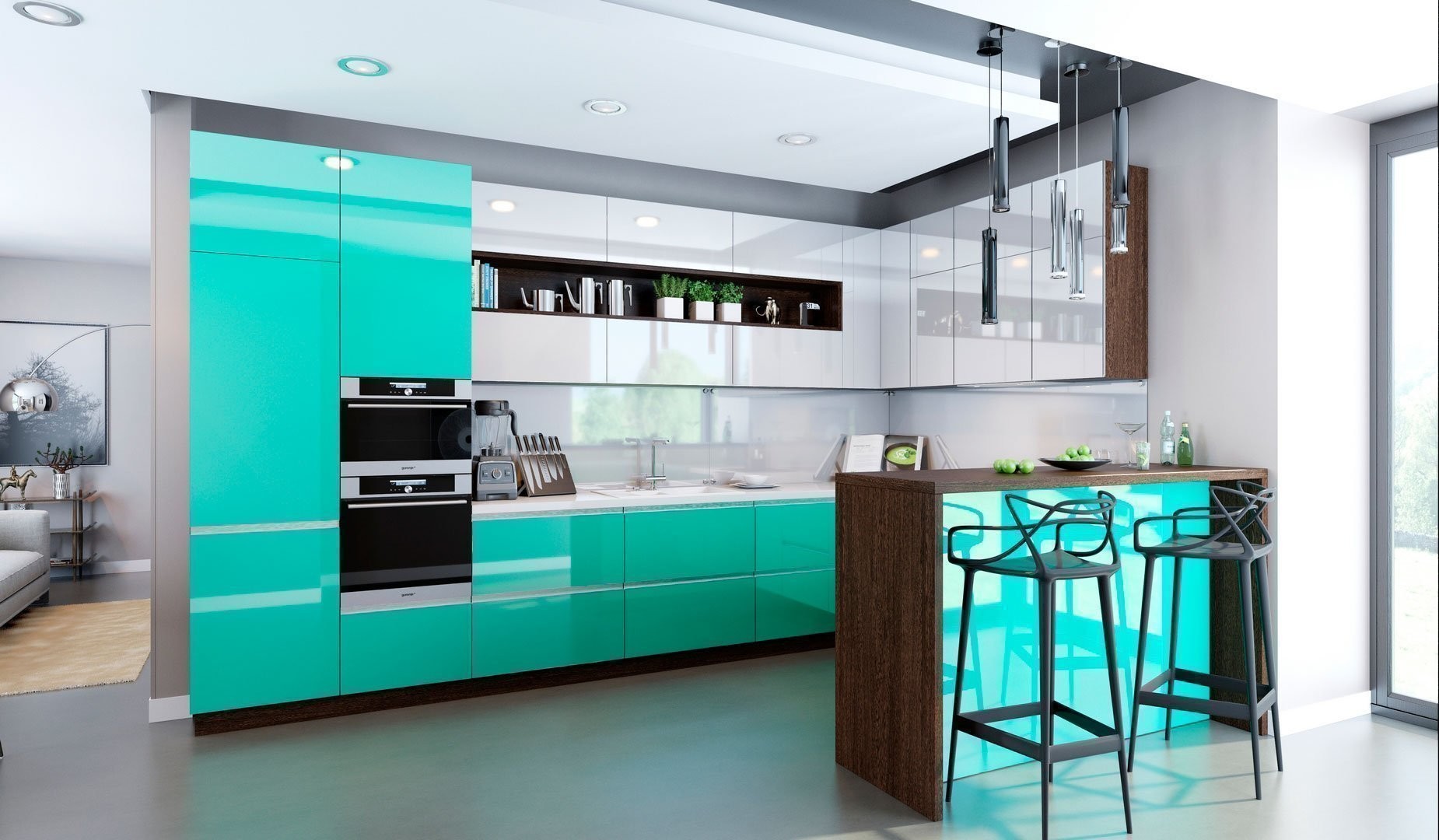 С барной стойкой, С открытыми полками, Разный уровень столешницы