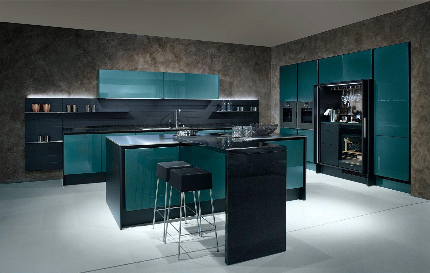 С островом, Со скрытыми ручками, Разный уровень столешницы, Встроенные