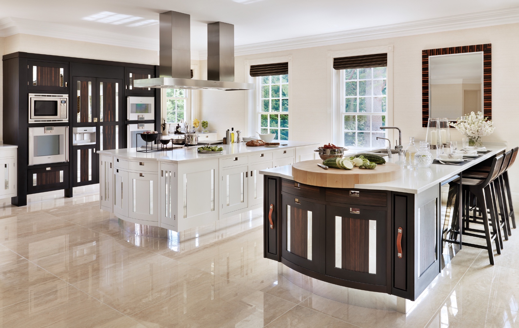 С островом, С фрезеровкой, Разный уровень столешницы, С карнизом сверху, С барной стойкой