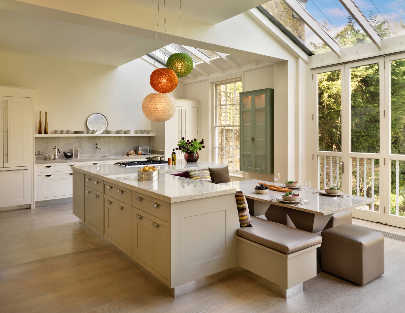 С островом, С открытыми полками, С фрезеровкой, Стеклянные фасады