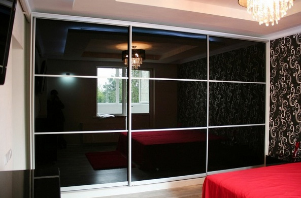 Шкаф-купе встраивается в стену, подойдет для современного интерьера. Глянцевый черный цвет фасадов отлично подойдет для светлого интерьера и будет отлично контрастировать в с концепцией комнаты.