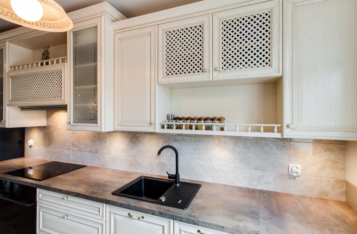 С фрезеровкой, С карнизом сверху, Фасад решетка, С открытыми полками, С патиной