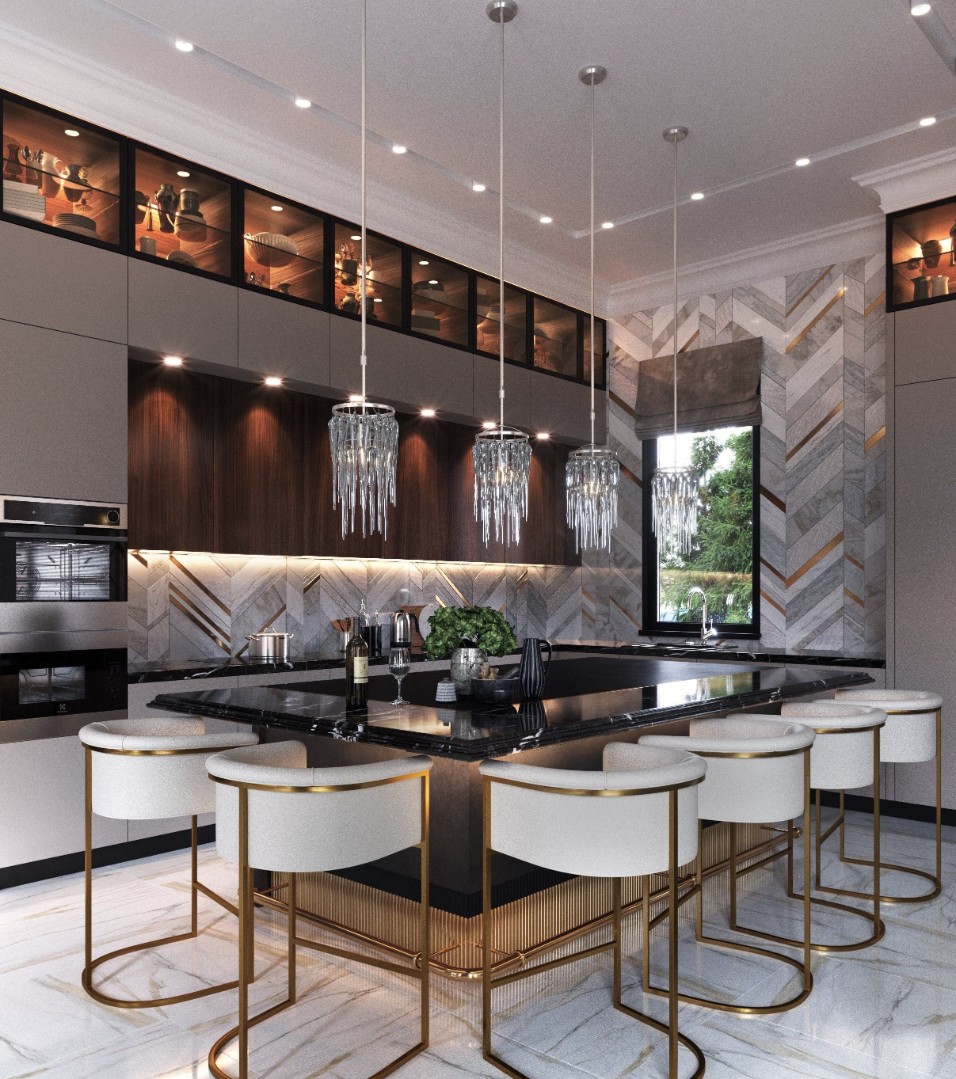Под потолок, С антресолью, С островом, Стеклянные фасады, Без ручек, С барной стойкой, С фигурным цоколем