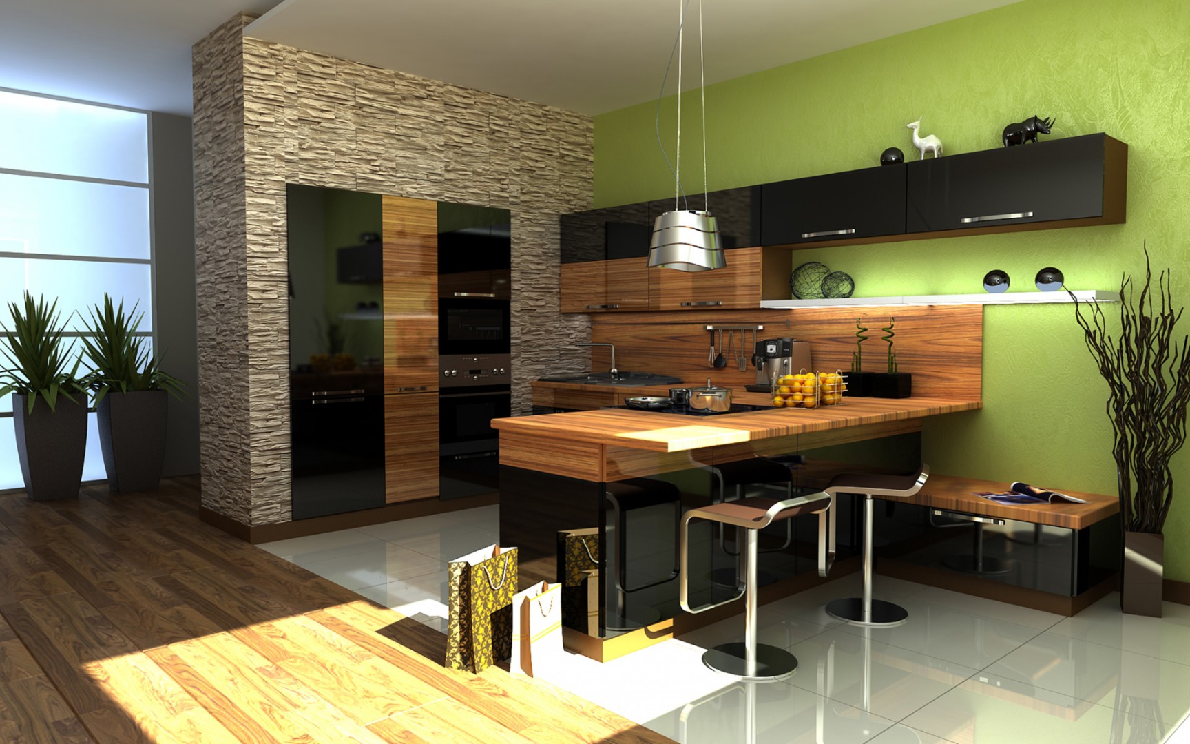 Разный уровень столешницы, С барной стойкой, С открытыми полками, Встроенные