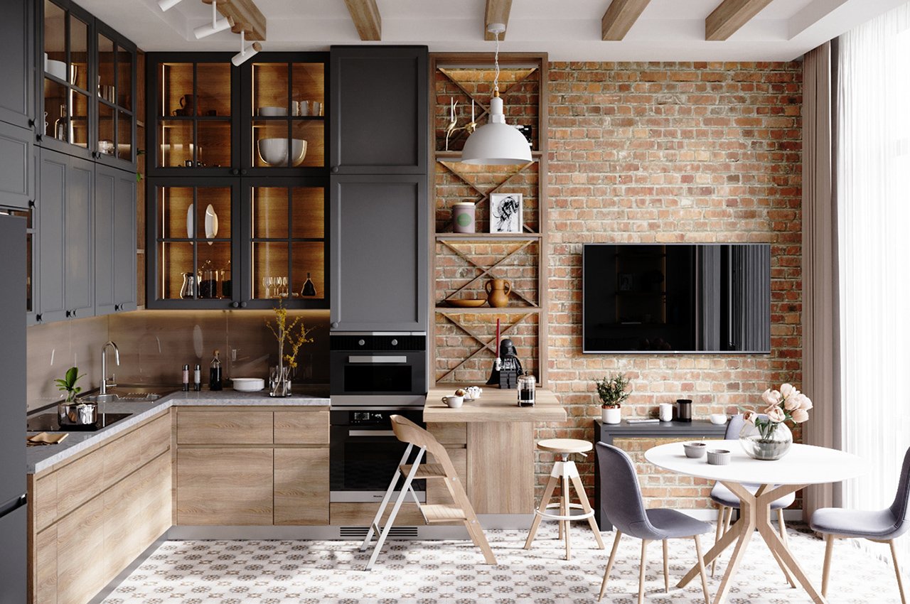 Со скрытыми ручками, Под потолок, С барной стойкой, Стеклянные фасады