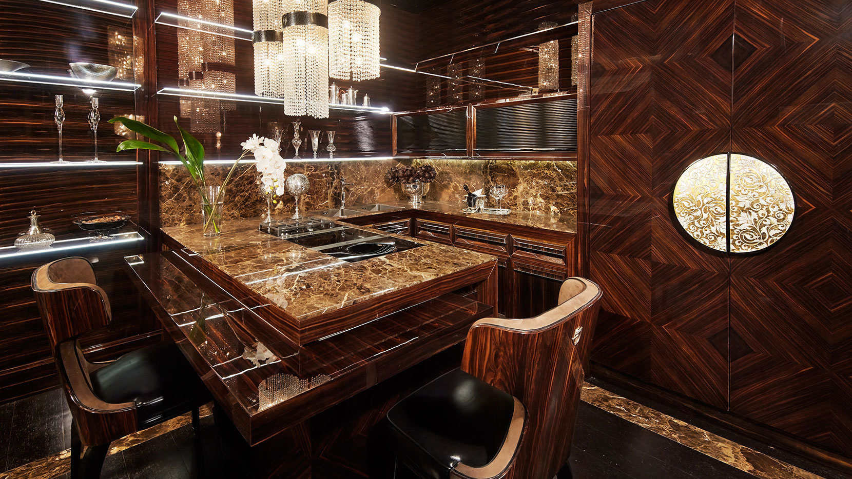 С барной стойкой, Разный уровень столешницы, С фрезеровкой, Полки без корпуса, Без ручек