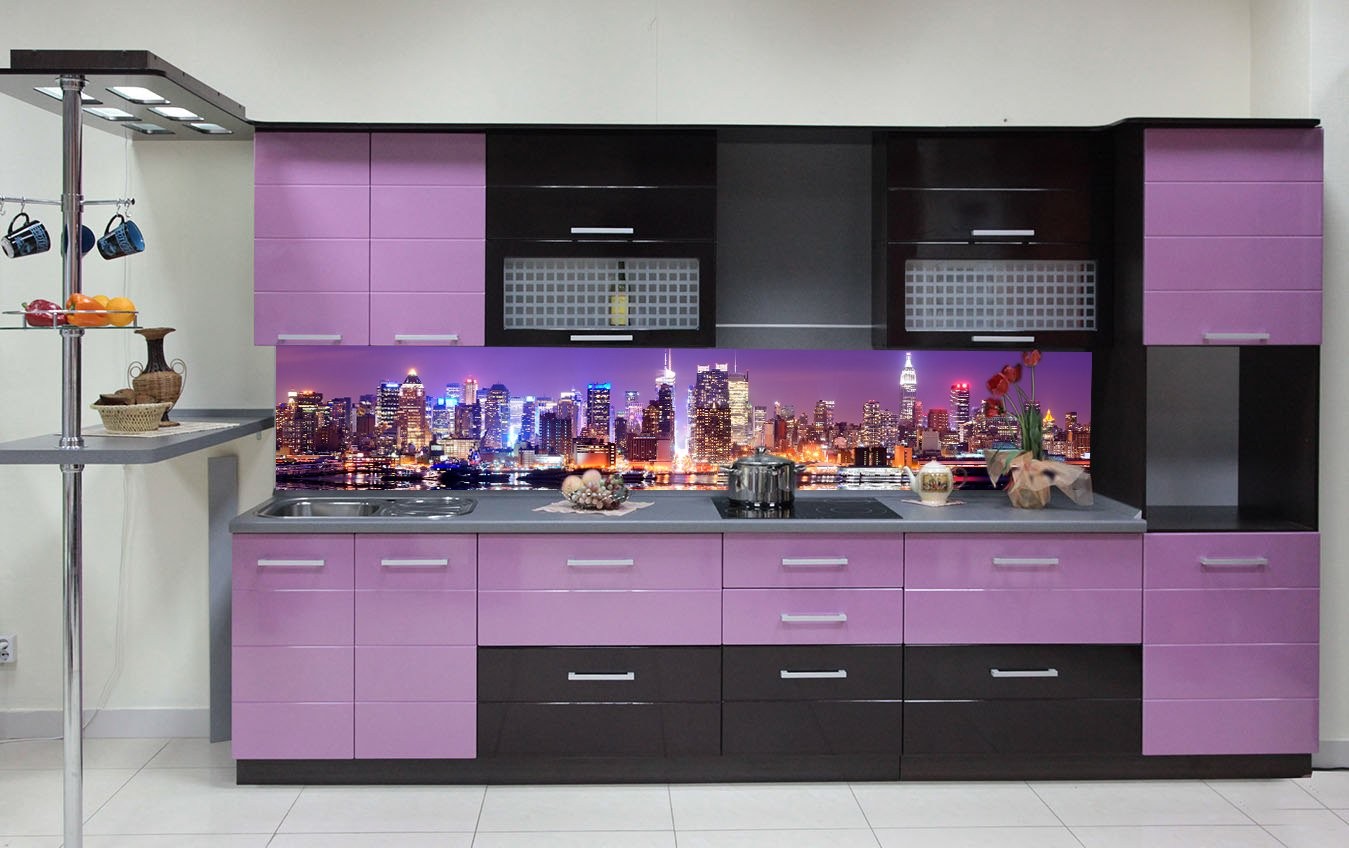 С барной стойкой, Разный уровень столешницы, Стеклянные фасады, Полки без корпуса, С карнизом сверху