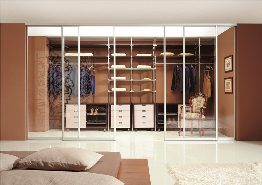 Такая система не является просто причудой богатых людей или данью моде. Теперь появилось по-настоящему оригинальное решение для тех, кто постоянно волнуется о том, куда сложить вещи. И как всё это обустроить, чтобы не возникло проблем с поисками. Лаконичная гардеробная поможет навести порядок и разложить всё по полочкам. Небольшое, но, при этом, вместительное помещение с дверями-купе. Можно установить не только стеллажи, но и полки, съёмные или нет. Не обойтись и без корзин с ящиками, они сделают конструкцию ещё более эффективной. Каждая гардеробная комната рассчитывается индивидуально по размерам помещения и пожеланиям заказчика.