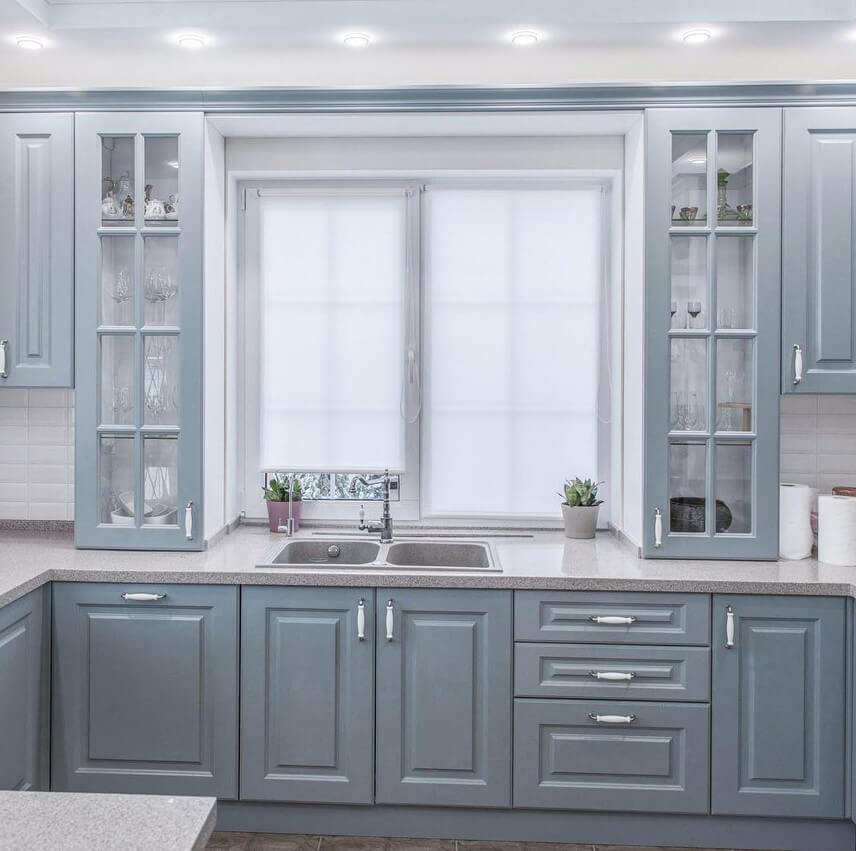С фрезеровкой, С карнизом сверху, Стеклянные фасады, С барной стойкой, С антресолью
