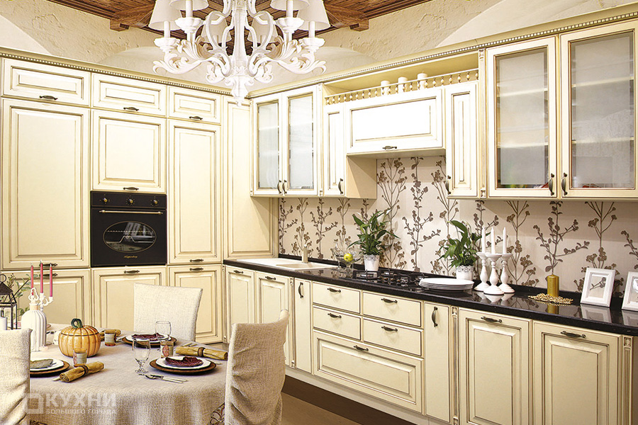 Кухня из МДФ «Париж» для любителей классики. Отличительные особенности: возможность исполнения радиусных элементов, глубокий цвет, глянцевое и матовое покрытие, нанесение патины. Кухня в истинно классическом стиле, очень гармоничная. Строгие формы, лаконичность декора, приятный оттенок топлёного молока создают ощущение равновесия и хорошего вкуса. Такая кухня обязательно станет украшением любого интерьера.