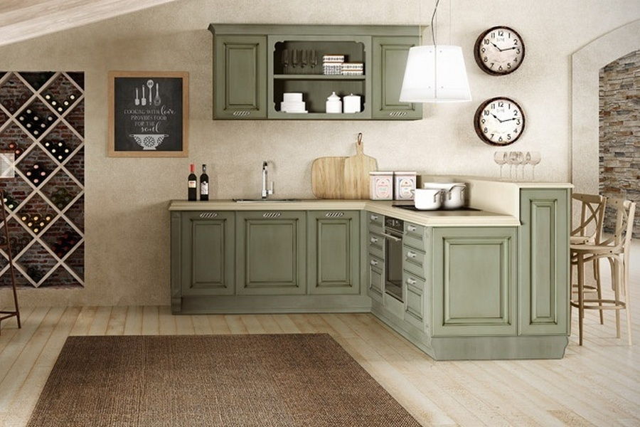 Кухня в стиле прованс с французским очарованием. Приятный зеленый цвет гарнитура из массива ясеня будет гармонично смотреться в любом интерьере и в любой цветовой гамме. Не пропустите кухню «Руан», если дано искали столь универсальный гарнитур.