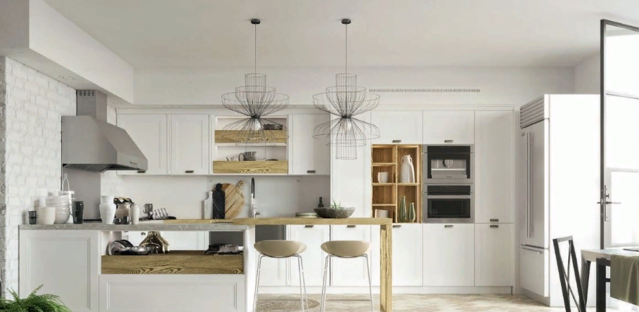 С барной стойкой, С открытыми полками, Стеклянные фасады
