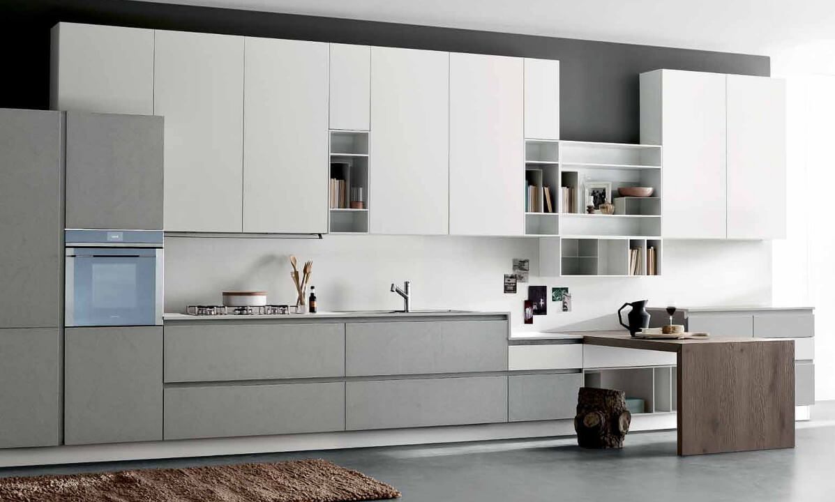 С барной стойкой, Разный уровень столешницы, С открытыми полками, Без ручек, Со скрытыми ручками
