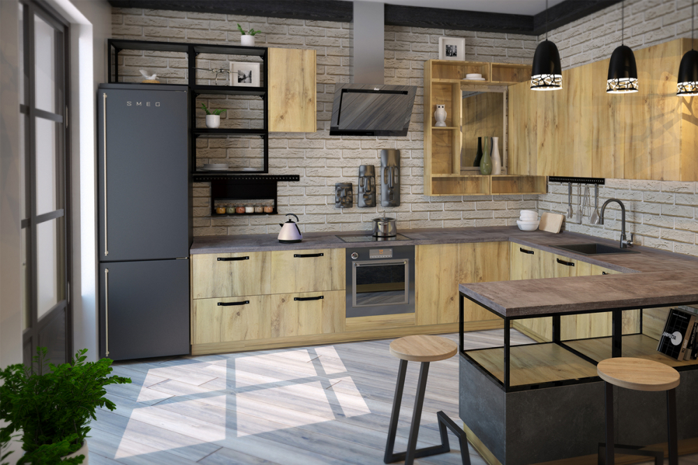 Полки без корпуса, С барной стойкой, С открытыми полками, Без ручек