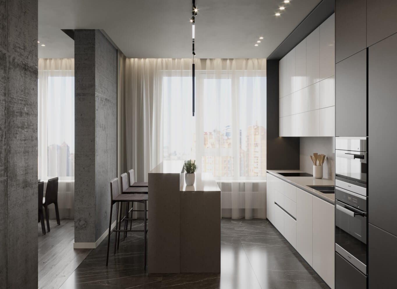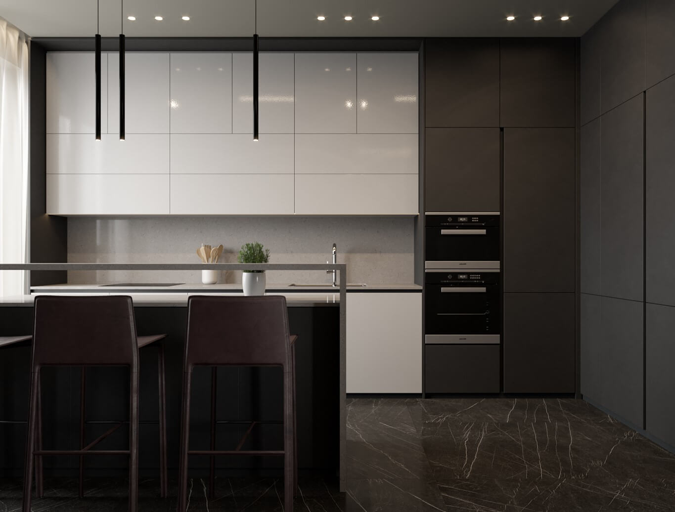 С барной стойкой, Под потолок, С антресолью, Без ручек