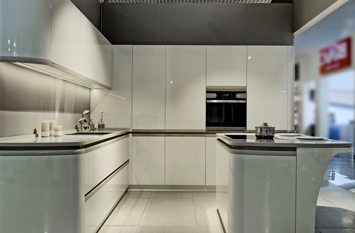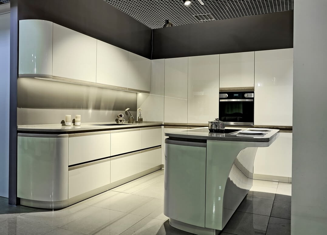 Радиусный фасад, Со скрытыми ручками, С барной стойкой