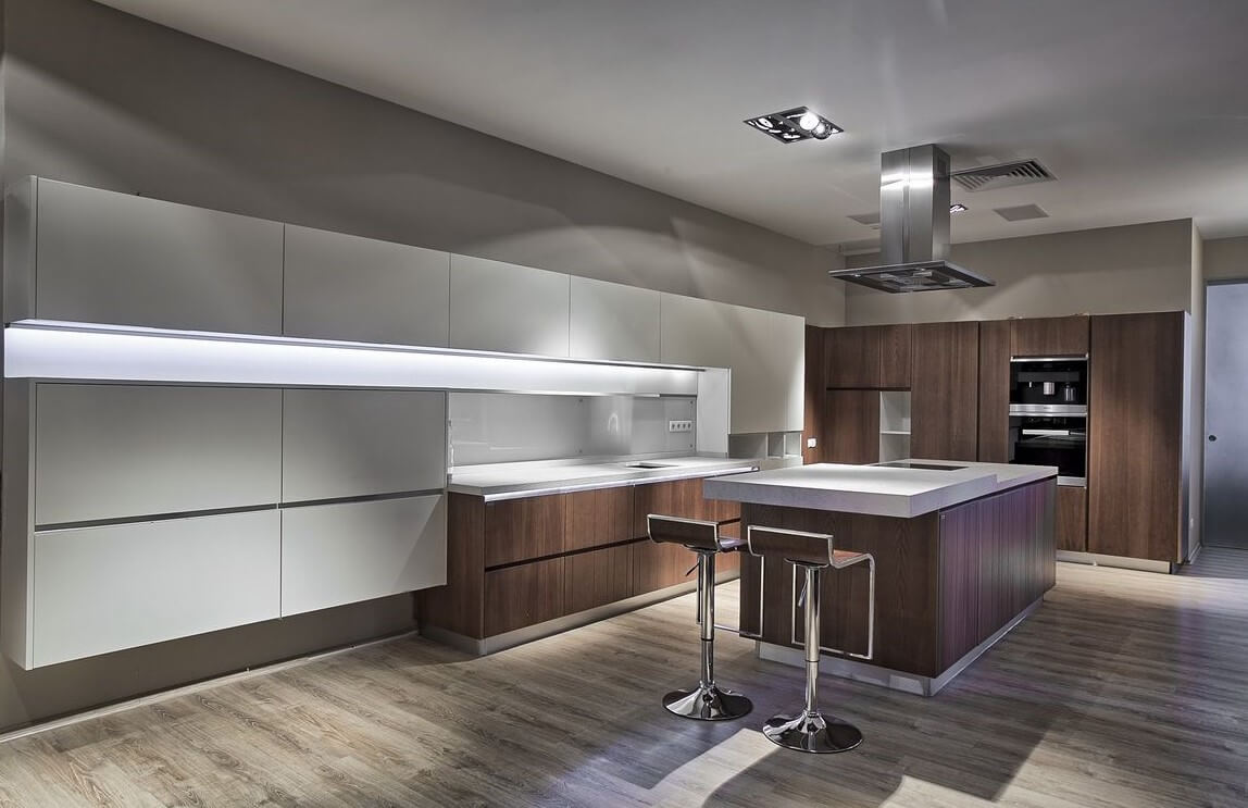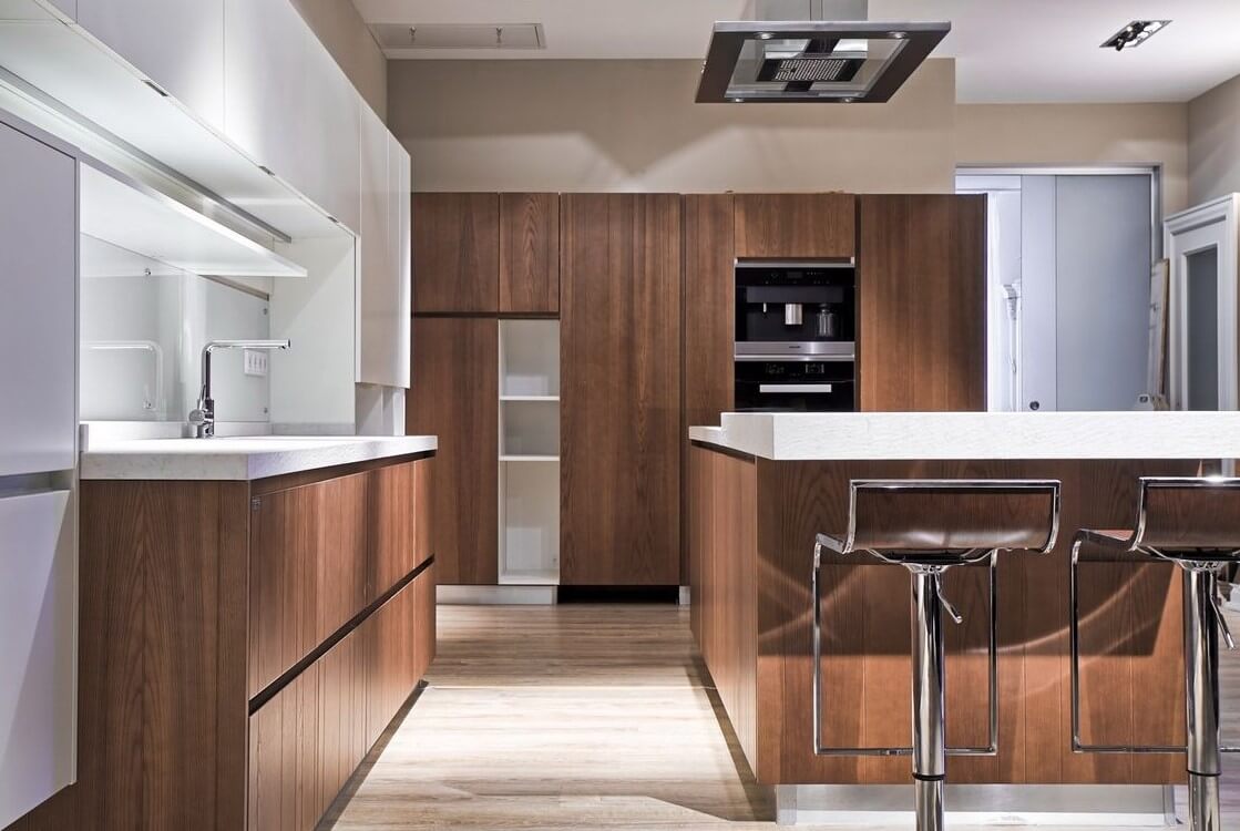 С открытыми полками, Без ручек, С барной стойкой, Разный уровень столешницы
