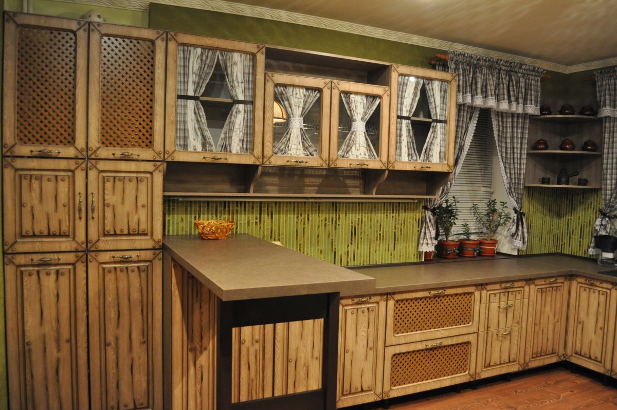 С барной стойкой, С фрезеровкой, С открытыми полками, Полки без корпуса, С патиной, Фасад решетка