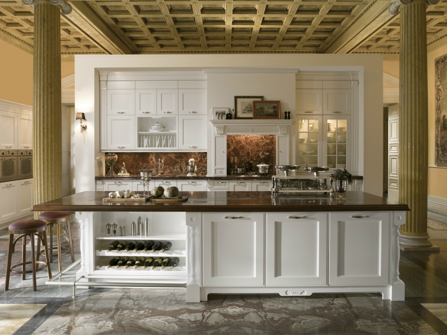 С островом, С открытыми полками, С карнизом сверху, С порталом, С фрезеровкой, Стеклянные фасады, Встроенные, С фигурным цоколем