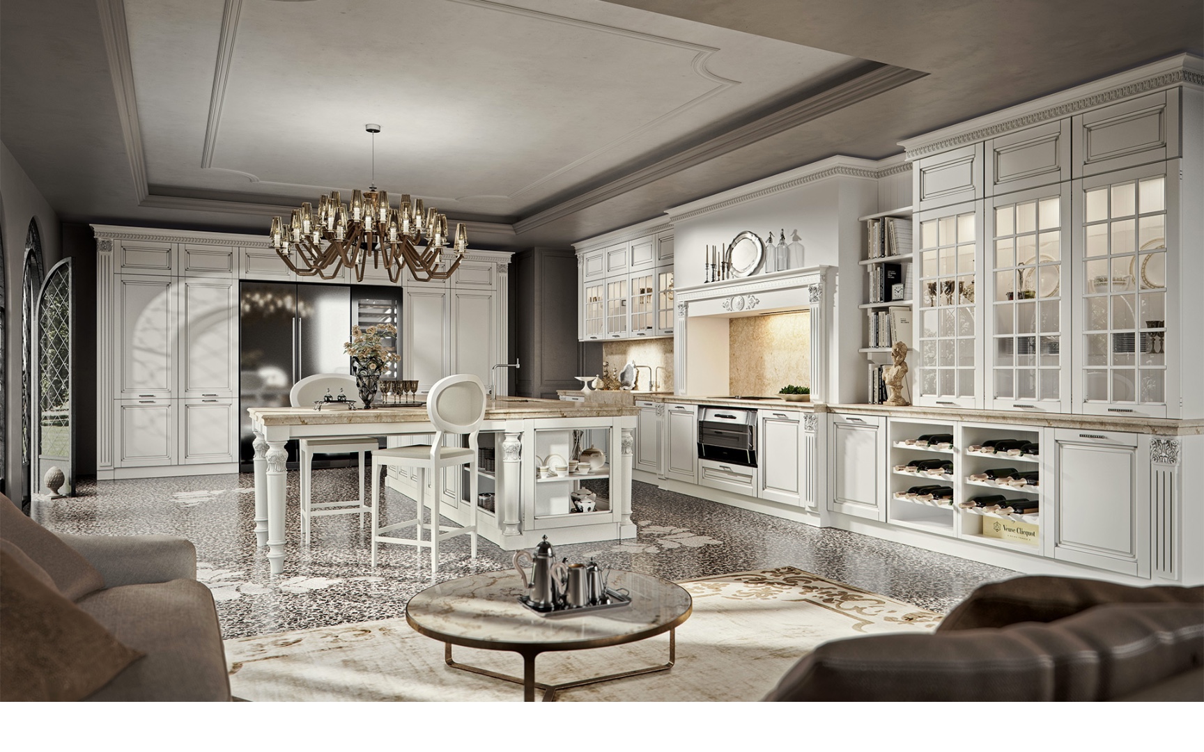 С карнизом сверху, С островом, С открытыми полками, С патиной, С барной стойкой, Стеклянные фасады, С фрезеровкой, С порталом, Под потолок, С фигурным цоколем, С антресолью