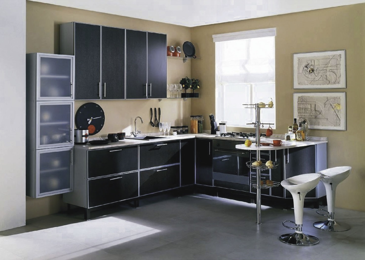 С барной стойкой, С открытыми полками, Стеклянные фасады