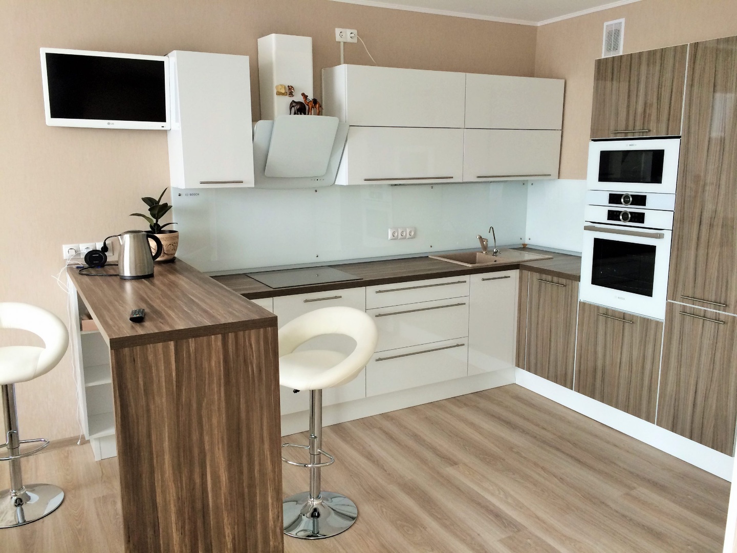 С барной стойкой, Разный уровень столешницы, С открытыми полками