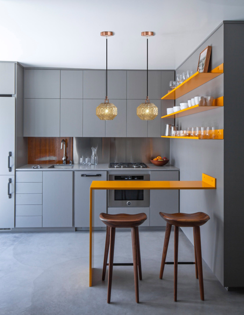 С барной стойкой, С открытыми полками, Под потолок, С антресолью, Без ручек