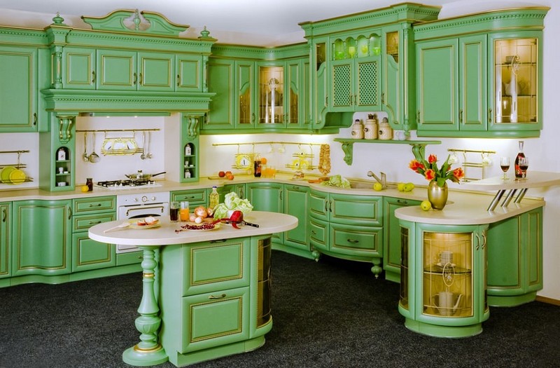 С патиной, С островом, С открытыми полками, Радиусный фасад, С фрезеровкой, Стеклянные фасады, С фигурным цоколем, Фасад решетка, С порталом, С барной стойкой