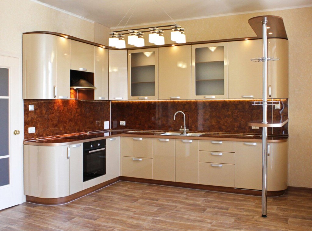 Радиусный фасад, С карнизом сверху, С барной стойкой, Стеклянные фасады