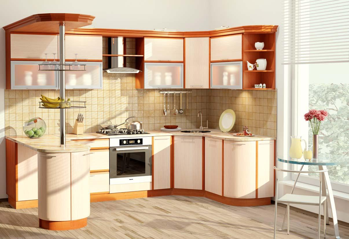 С карнизом сверху, С открытыми полками, Радиусный фасад, С барной стойкой, Стеклянные фасады