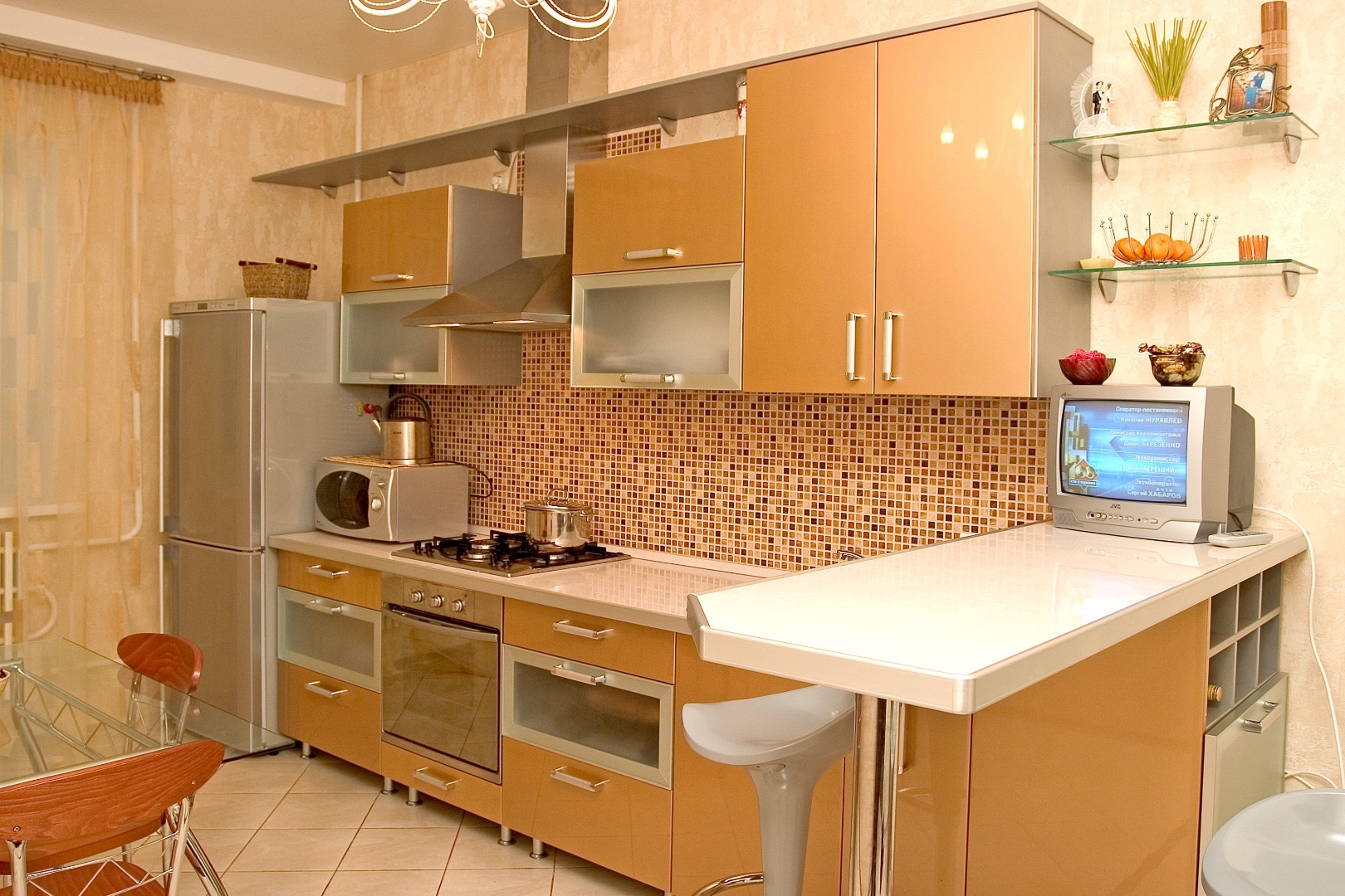 С карнизом сверху, Стеклянные фасады, Полки без корпуса, С открытыми полками, С барной стойкой, Разный уровень столешницы