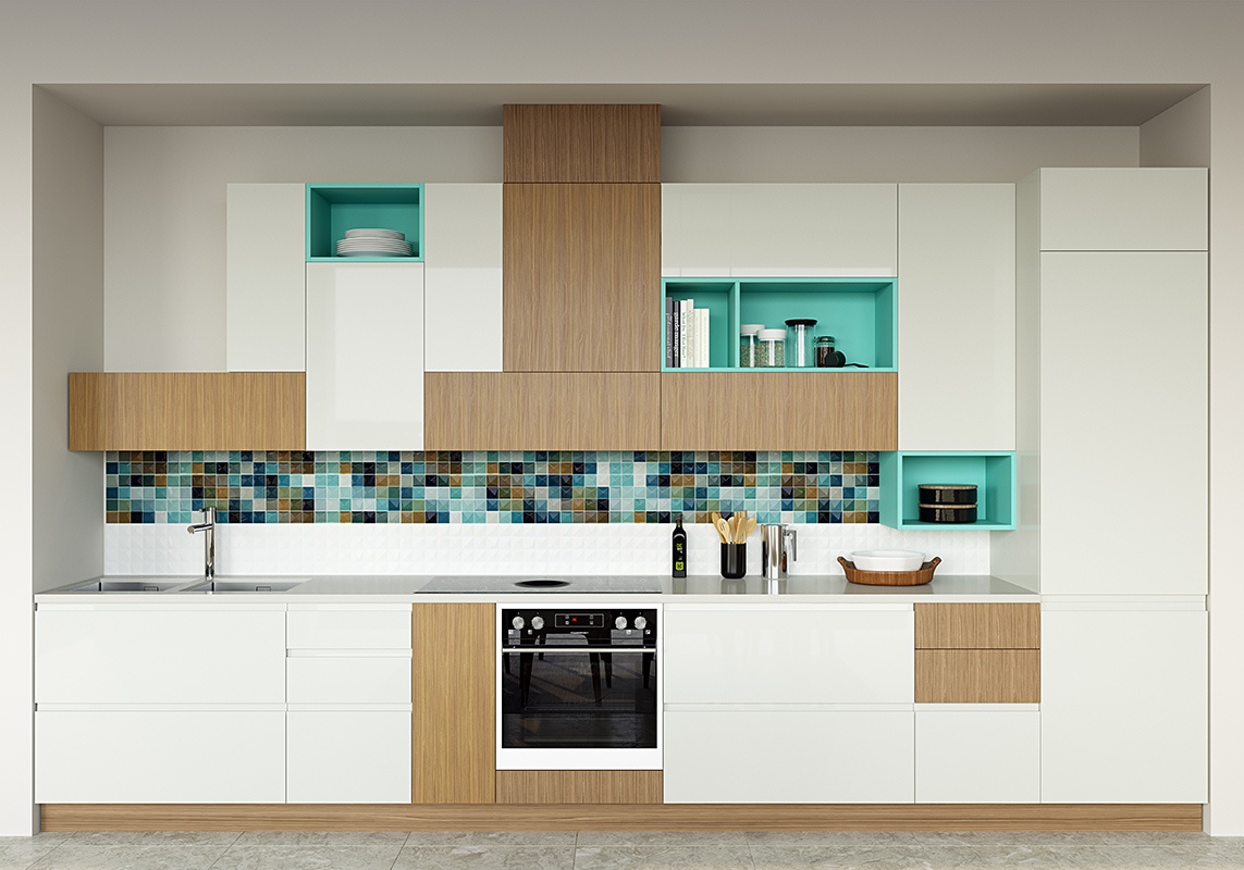 С открытыми полками, Без ручек, Со скрытыми ручками