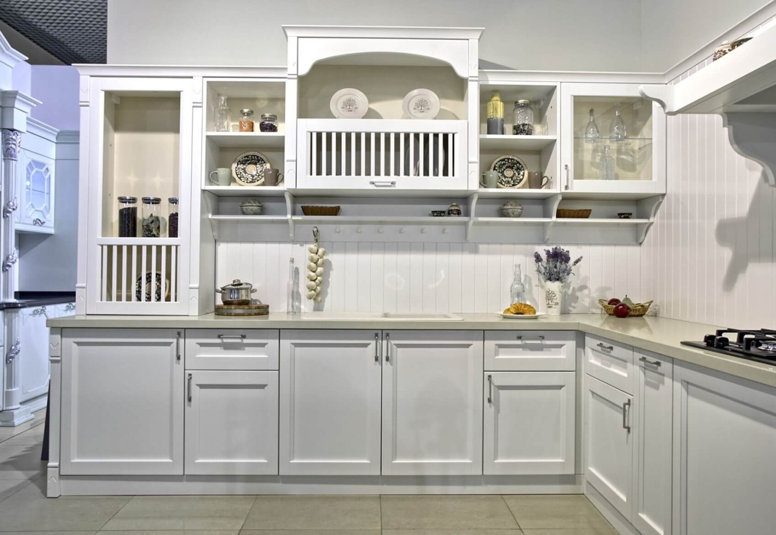 С фрезеровкой, Фасад решетка, Стеклянные фасады, С открытыми полками, С карнизом сверху, С фигурным цоколем