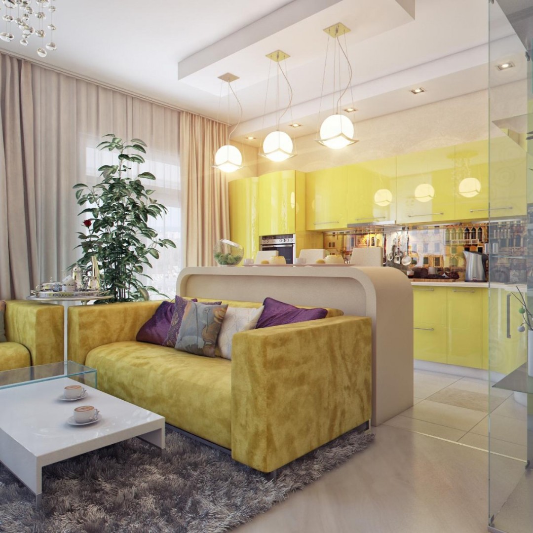 С островом, С барной стойкой, Для кухни-гостинной