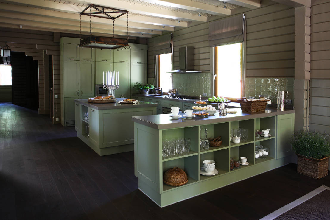 С фрезеровкой, С открытыми полками, С островом, Для загородного дома