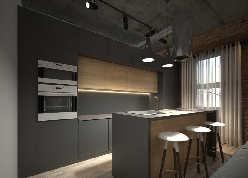 С антресолью, С островом, Под потолок, Без ручек