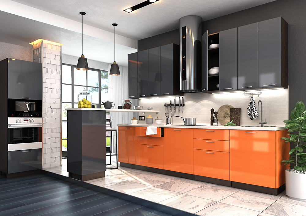 Кухня оранжевого цвета Ария