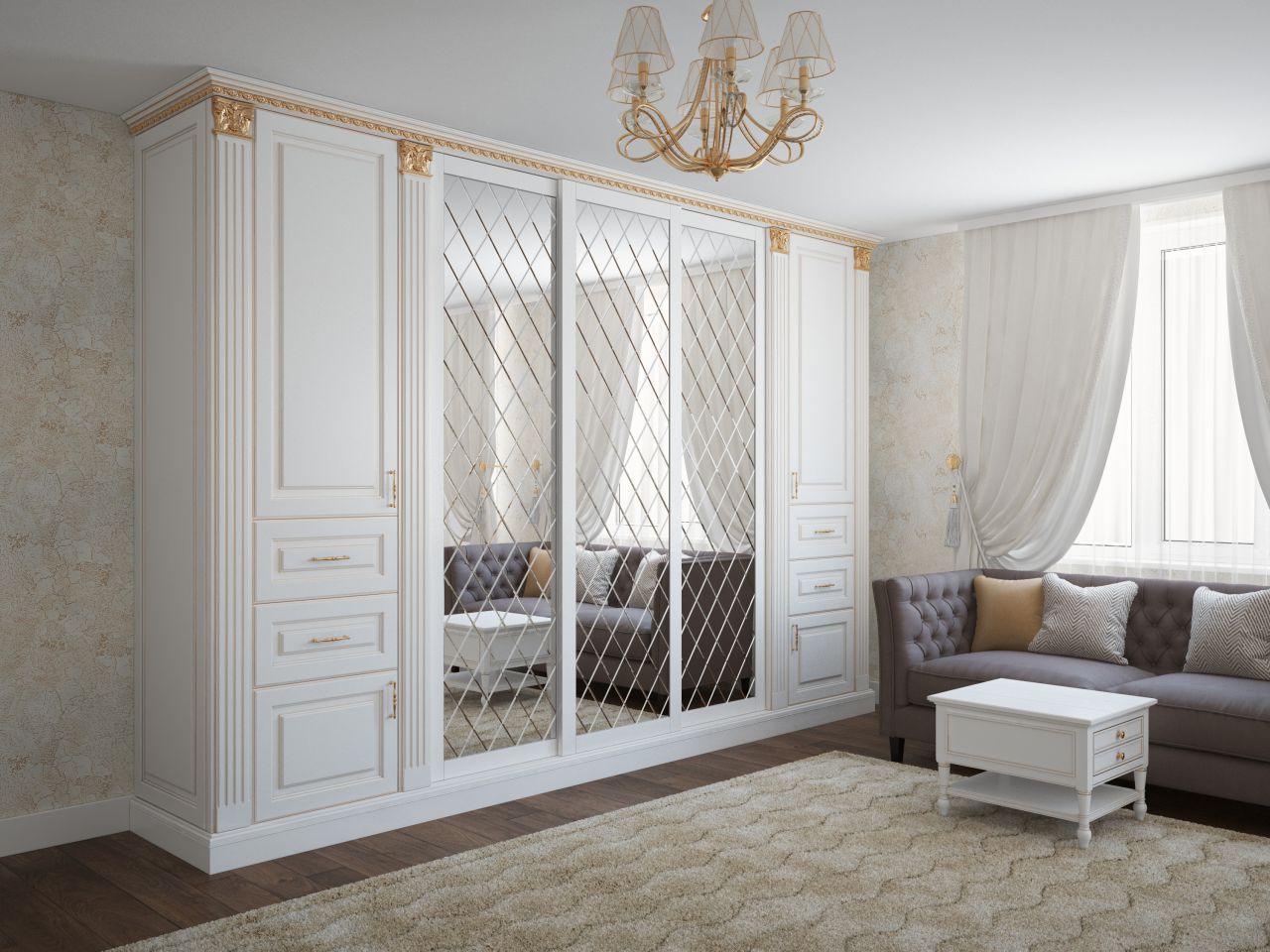Распашные двери, Под потолок, С карнизом сверху, С патиной, С выдвижными ящиками