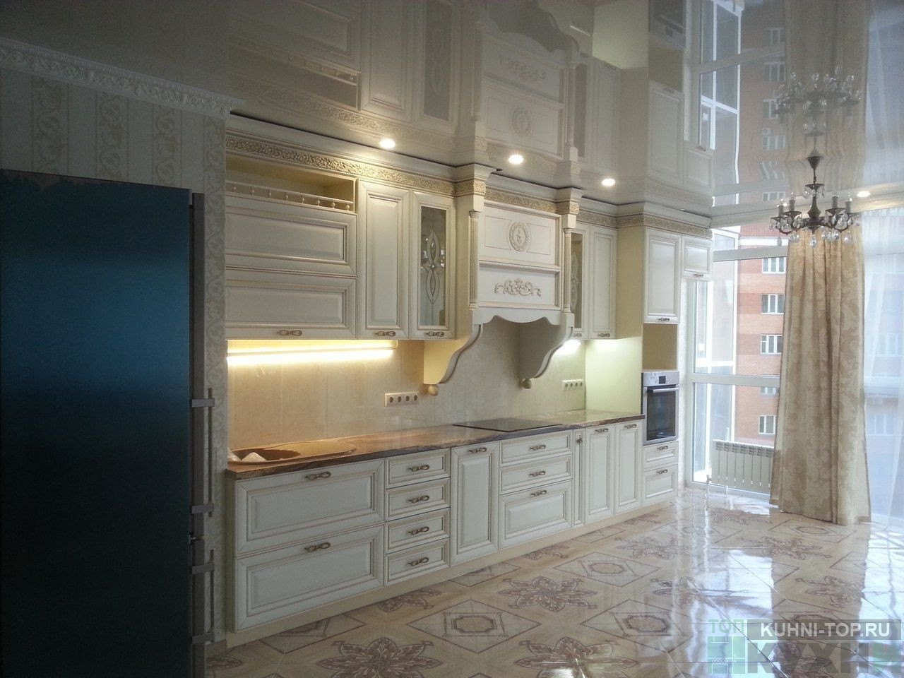 Кухня Эстет 7 выполнена в классическом стиле. Красивая, но строгая фрезеровка абсолютно не отвлекает взгляд от акцентов этой модели. Высокий, сложный карниз с резной вставкой и портал с резными элементами поражают своей красотой и изяществом.