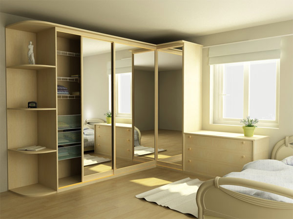 Угловой шкаф-купе с зеркальным фасадом — это лучший вариант не только для вашей спальни, но и других комнат. Шкаф при помощи зеркал визуально расширяет пространство, что особенно актуально для небольших помещений. Отметим, что мебель, имеющая зеркальный фасад всегда будет смотреться выигрышно, а тем более если это роскошный шкаф с удобными боковыми полками.