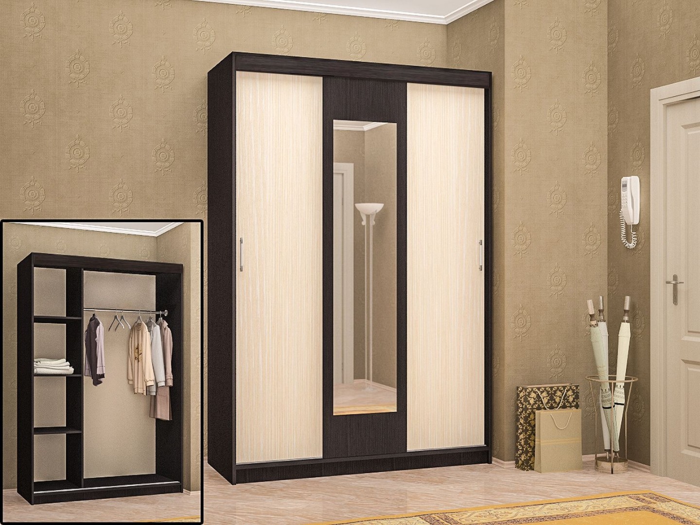Шкаф-купе в цвете венге темное Венсан