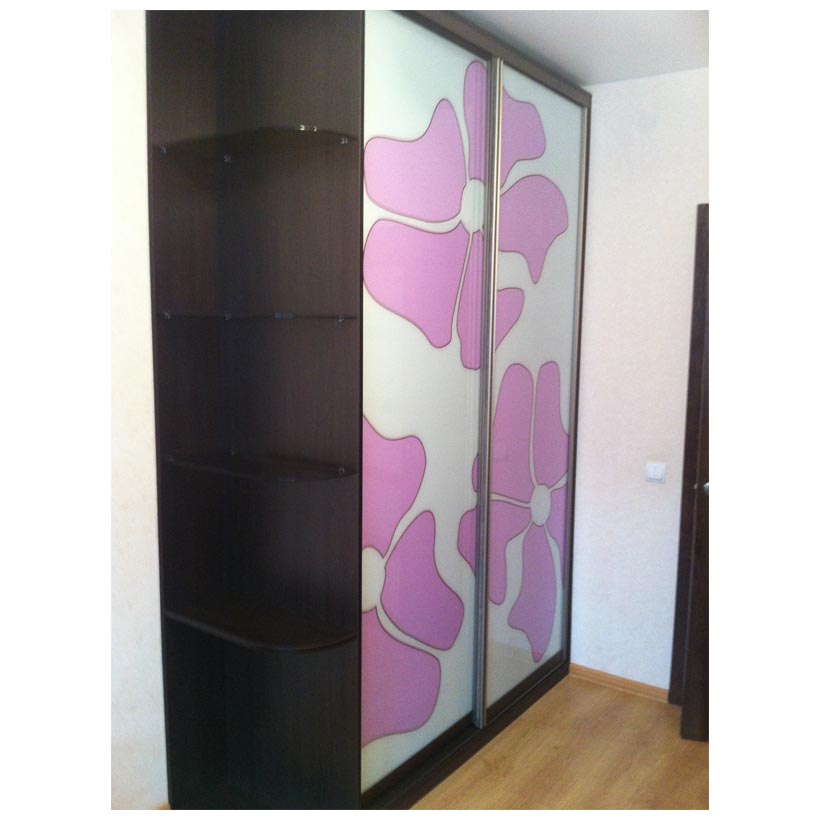 Корпус выполнен в цвете венге, а глянцевая поверхность дверей имеет молочно-белый цвет. На фасаде изображены светло-сиреневые цветы. Шкаф отлично подойдет для гостиной с контрастным дизайном интерьера или для хорошо освещенной прихожей.