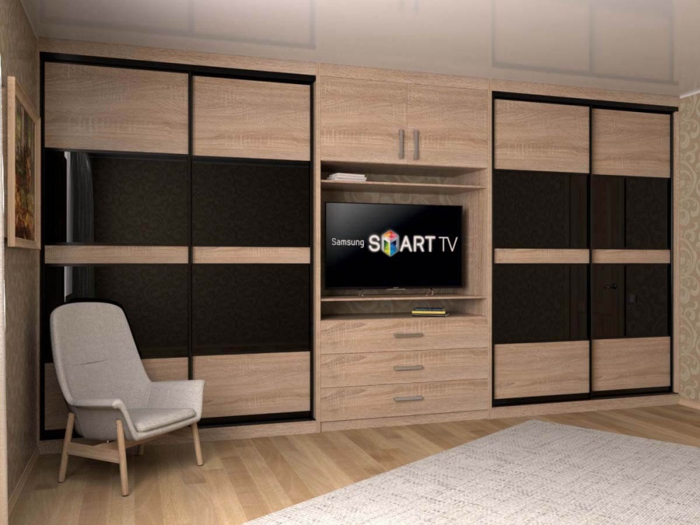 Под потолок, Ниша по центру, С выдвижными ящиками, С открытыми полками, Встроенный, Во всю стену
