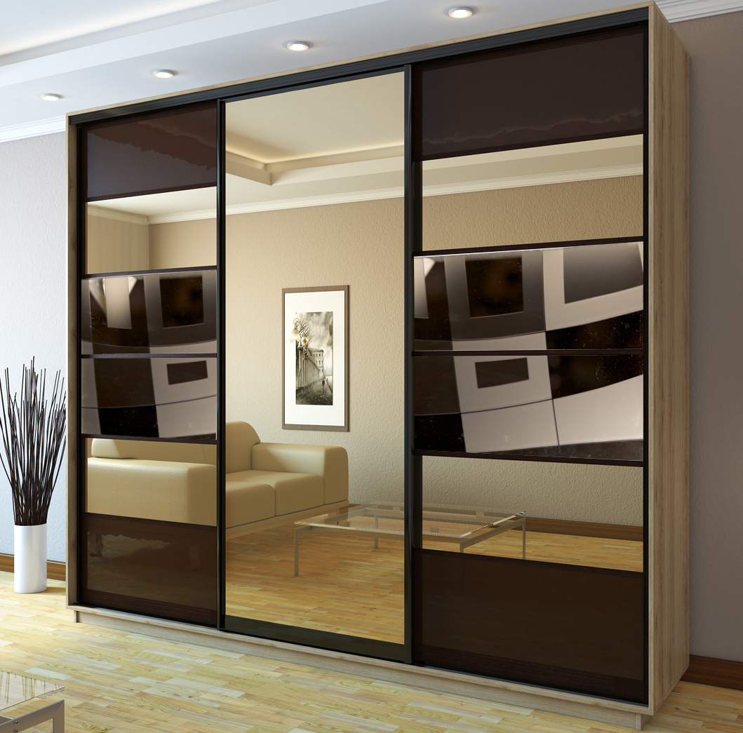 Шкаф-купе цвет шоколад Алмаз с фотопечатью