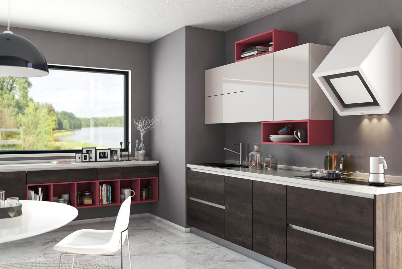 С открытыми полками, Без ручек, Со скрытыми ручками